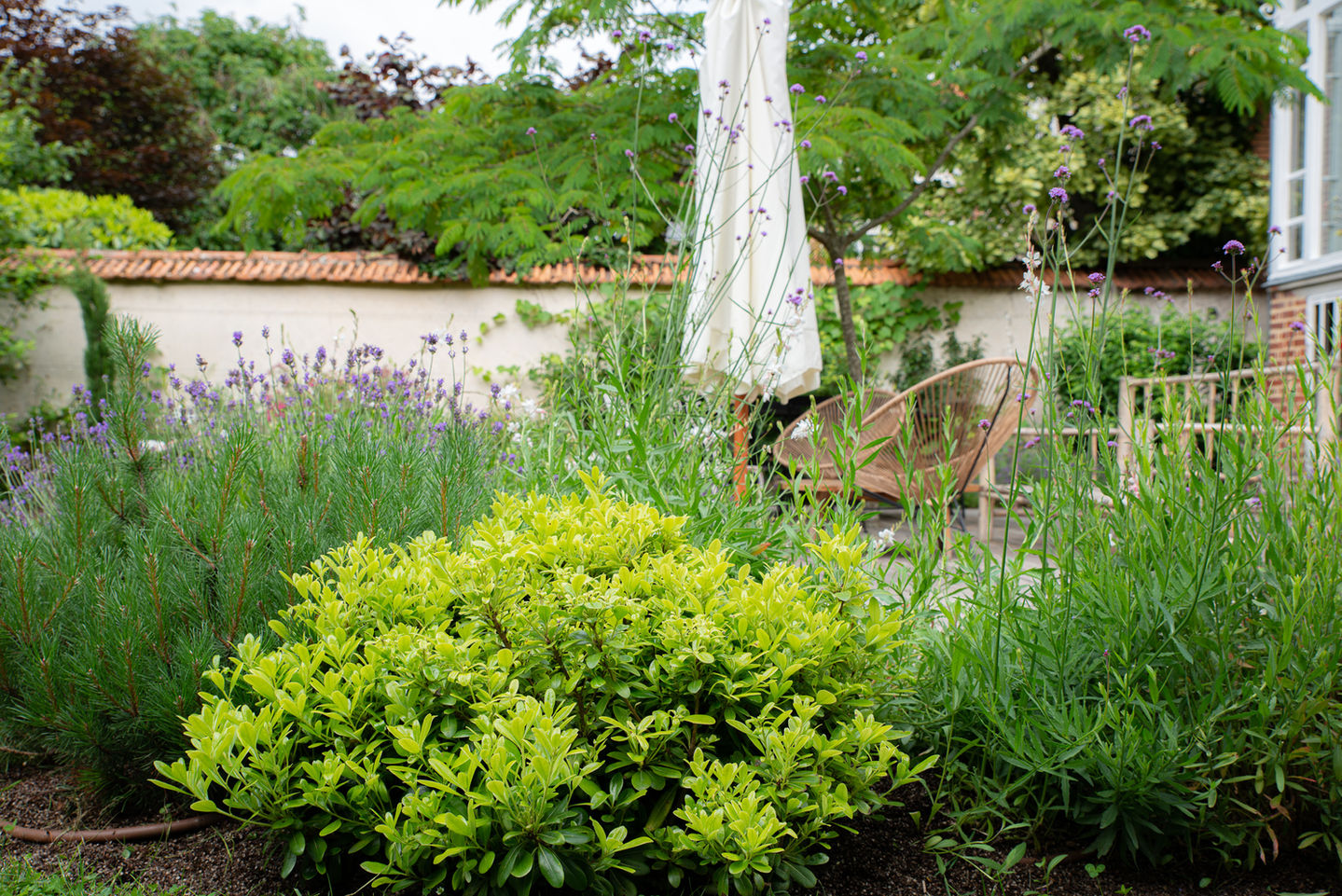 Jardin qui demandait une reprise en main, les arbres sont beaux, pas de vis à vis et quelques grimpantes volubiles à maîtriser, la strate arbustive est peu présente.